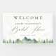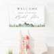 Rustique chic aquarelle forêt arbres et paysage de montagne, bannière personnalisée. Graphique signature élégante calligraphie "Fête des mariées".