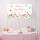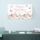 Banderole de douche nuptiale avec typographie personnalisable sur une belle et délicate illustration de fleurs sauvages d'aquarelle et papillons.