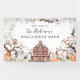Accueillez vos invités avec style grâce à cette bannière de Halloween Cottagecore fantaisiste. Avec une maison hantée en son centre, encadrée de fantômes aquarellés, de citrouilles, de toiles d'araignée et de branches torsadées, ce design allie le charme effrayant vintage à des détails Cottagecore cosy. Parfait pour être suspendu à l'entrée de votre soirée d'Halloween, derrière une table de friandises ou comme toile de fond festive pour photos, il plante le décor pour une célébration magique et inoubliable.
