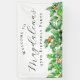 Elégante aquarelle d'hiver vert sainte sprigs créent une belle bordure de verdure de vacances au bas de cette bannière d'accueil fête d'anniversaire, verte sainte est la fleur de naissance de décembre. Une combinaison de polices à la mode lui donne une ambiance moderne. Tout le texte est modifiable.