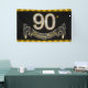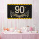Bannière de fête du 90e anniversaire avec de beaux chiffres en diamant doré et une bannière noire et or sur un fond noir et or. Vous pouvez changer la couleur du fond, modifier la taille de la bannière et ajouter du texte pour personnaliser cette élégante bannière de fête du 90e anniversaire. Il s'agit d'une conception imprimée sans vrais diamants, paillettes, etc.