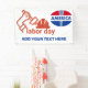 Bannière Rouge Blanc et Bleu Fête du Travail avec badge America, une icône de travailleur et un modèle de texte.Un design parfait pour la journée du Travail.Cliquez sur le bouton Personnaliser pour la customiser avec votre propre texte.Si vous le voulez sans texte, alors veuillez supprimer le texte mentionné du modèle