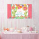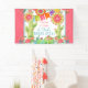 "Faisons la fête de la Fête des Fleurs de Cactus 3e anniversaire Bannière." Bright and colorful Mexican Fiesta style bannière est personnalisable pour toute occasion ou événement en utilisant les champs modèles. Cactus aquarelle peint à la main avec fleurs, pingouins et bannières de menthe a été créé par Audrey Jeanne Roberts, artiste et designer de renommée internationale, copyright.