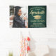 Ajoutez une touche personnalisée aux décorations de la fête de fin d'études supérieures ou secondaires avec cette bannière photo personnalisée verte et or. Le design comprend une planche de mortier en or faux métallique, une typographie moderne stylisée, une calligraphie manuscrite de style manuscrit et une image du diplômé, comme une image ou une image de haut niveau de la cérémonie de début. Veuillez noter que l'or est imprimé en couleur et non en papier. Ce signe de fête est une façon élégante de célébrer la journée spéciale. Félicitations au diplômé !