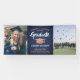 Ajoutez une touche personnalisée aux décorations de la fête de fin d'études supérieures ou secondaires avec cette bannière photo personnalisée bleu marine, cuivre et blanc. Le design présente un arrière - plan bleu foncé et sombre, un casquette de tableau de mortier faux papier, une typographie moderne stylisée, une calligraphie manuscrite de script, et 2 photos du diplômé, comme des images de haut niveau ou des images de la cérémonie de début. Veuillez noter que le cuivre est imprimé en couleur et non en métal. Ce signe de fête est une façon élégante de célébrer la journée spéciale. Félicitations au diplômé !