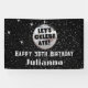 Fêtons Disco Ball Parties scintillant Argent Bannière Noire N'importe quel âge fête d'anniversaire. Cette enseigne Silver and Black Disco Ball Birthday Party est parfaite pour une soirée rétro sur le thème des années 80. Customisez avec l'âge et le nom de l'anniversaire que vous fêtez.