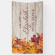 Vous serez accueillis sous une douche nuptiale d'automne avec cette bannière rustique sur le thème de l'automne. Vous pouvez la customiser avec le nom, l'occasion et la date de la mariée. Il est orné d'un arrière - plan en bois blanc et de feuilles d'automne colorées qui reposent sur le côté.