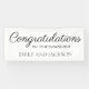 Blanc avec une élégante soirée de fiançailles en écriture noire "Félicitations à votre fiançailles" bannière personnalisée avec les noms de la mariée et du marié.