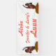 Accueillez vos invités de luau avec cette bannière faite sur commande de thème d'Hawaï comportant les filles de danse polynésienne vintages de style dans des jupes d'herbe. Personnalisez la police pour votre occasion spéciale.