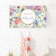 Bannière d'anniversaire fleurie avec de jolies fleurs de campagne sauvages en violet, lavande, feuilles verts et plus, avec un élégant costume d'arrière - plan éditable pour les anniversaires de filles pour tout âge.