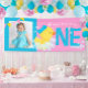 Fille rose Aquarelle Canard Oh Quel plaisir d'être un 1er anniversaire de fête Photo Banner comprend 1 photo rose, Bébé bleu, jaune et bleu