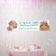 Les illustrations les plus jolies d'un petit singe qui regarde autour du côté de cette bannière et d'un petit lion tout aussi mignon qui vous regarde ont de jolies tiaras à tête fleurie et sont dressées contre un arrière - plan blanc foncé qui a des modèles de texte noir et bleu ciel. Elles sont idéales pour un baby shower bébé garçon ou fille ou pour une fête de 1er, 2ème, 3ème, 4ème, 5ème anniversaire d'un bébé. Personnalisez les modèles pour convenir à l'occasion spéciale de votre enfant et wow vos invités avec ce mur suspendu adapté à un safari, zoo, jungle ou une soirée d'aventure africaine.