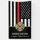 This design features a firemen's flag with black and white stripes, and a thin red line stripe as well. "Congratulations" and a fireman's badge sits above the name of the graduating firefighter. This design also works great for retiring firefighters, lieutenants, or chiefs. Celebrate in style!