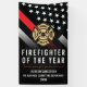 Celebrate exceptional dedication and bravery with this striking Firefighter of the Year design. It features a bold firefighter flag with classic black-and-white stripes and a powerful thin red line to honor courage and sacrifice. This banner makes a meaningful way to recognize a firefighter, lieutenant, captain, or chief for outstanding service, commitment, and leadership. A distinguished keepsake to highlight their hard work, honor their achievements, and show appreciation for the impact they make in their community.