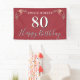 Bannière d'aquarelle rouge florale 80e anniversaire. Le design a des roses d'aquarelle et des brindilles. Personnalisez avec votre nom et votre âge et faites votre propre bannière de fête d'anniversaire unique. Idéal pour elle qui fête le quatre-vingtième anniversaire.