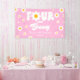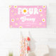 C'est une Fleur de marguerite rose rétro quatre fois Super 4ème anniversaire bannière de fête.