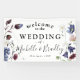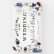Chic Boho Fleur sauvage Bienvenue sur la bannière Mariage. Le design se compose d'un arrière - plan blanc classique décoré de fleurs sauvages de printemps et d'été et d'une végétation botanique dans des tons somptueux de rose pâle, de jolies bleus, de bordeaux foncé et de blancs délicats. Le modèle "bienvenue" est facile à customiser en utilisant le modèle fourni. La papeterie mariage correspondante est disponible dans notre collection "Fleur sauvage bohème".