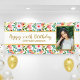 Faites de votre événement un événement spécial grâce à cette bannière personnalisée avec une photo et un texte personnalisé dressé contre un joli arrière - plan floral aquarelle. Parfait pour une fête d'anniversaire, un mariage ou un baby shower, un anniversaire, une fête de retraite et plus encore.