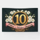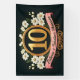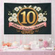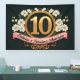 Célébrez une décennie d'amour avec cette élégante bannière d'anniversaire, mettant en vedette un "10" doré et gras en son cœur, symbolisant votre engagement durable. Le nombre est encadré par une bordure circulaire scintillante, avec de luxuriants arrangements de délicates fleurs blanches et de feuillage vert cascades autour de lui. Un beau ruban rose coule gracieusement en dessous, affichant des noms personnalisés. Cette bannière est la pièce maîtresse parfaite pour votre célébration de cet événement marquant, un hommage intemporel à votre histoire d'amour.