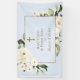 Design unique et élégant avec de magnifiques fleurs d'ivoire blanc aquarelle, des feuilles verts, cadre faux or, sur un arrière - plan bleu clair. Utilisez l'outil Personnaliser pour ajouter vos informations. Pour les articles correspondants, s'il vous plaît, visitez mon Baptême et 1er Anniversaire Collection de fête.