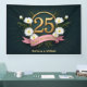 Célébrez un quart de siècle d'amour avec cette bannière du 25e anniversaire du mariage. En son coeur, un "25" doré rayonne d'élégance, encerclé par une gracieuse couronne de feuilles verts et de fleurs d'anémones blanches pures, symbolisant l'amour durable. Un ruban rose pâle ci-dessous indique "Joyeux anniversaire !", prêt pour les noms du couple heureux. Cette bannière est la toile de fond parfaite et personnalisée pour votre journée spéciale, transformant n'importe quel espace en un bel hommage à un beau voyage.