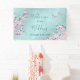 Jolie floraison de cerisiers roses et deux mignons papillons sur un arrière - plan chatoyant turquoise. Avec un texte de bienvenue mariage et des noms personnalisés. La jolie bannière mariage aux fleurs de cerisiers en fleurs et aux papillons contribue à créer un charme de bonne volonté et à répandre la joie tout autour.