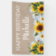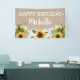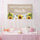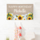 Des tournesols rustiques jaunes et bruns et des marguerites blanches sur la bannière brune "Joyeux anniversaire". Personnalisé avec le nom de l'invité d'honneur. Contactez-moi pour obtenir de l'aide sur la personnalisation ou pour demander des produits correspondants.
