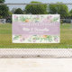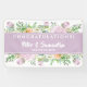Fleurs d'été Félicitations Mariage Bannière conçue avec des amas de fleurs d'aquarelle douce en violet, rose et jaune, cette bannière inclut les prénoms et la date de Mariage de la mariée et de la chambre en texte blanc sur un arrière - plan violet. Pour personnaliser, insérez simplement votre texte dans notre modèle facile, en remplaçant les noms et la date des exemples.
