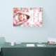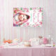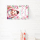 Banderole de bienvenue de baby shower fleurie personnalisée avec une petite fille sous une couverture fleurie. Jolies roses botaniques roses et feuilles verts, arcs et papillons roses et le tout avec un look aquarelle.