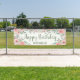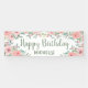 Banderole extérieure "Joyeux anniversaire" (ou acheter une pour l'intérieur) pour votre fête d'anniversaire du printemps ou d'été. Belles fleurs d'aquarelle rose vif et feuilles vert sauge sur un arrière - plan blanc. Personnalisé avec le nom de l'invité d'honneur.