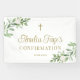 Bienvenue aux invités à votre événement avec cette bannière de confirmation personnalisable. Il dispose d'un feuillage aquarelle avec des fleurs blanches. Personnalisez cette bannière de confirmation aquarelle en ajoutant vos propres détails. Cette enseigne de bienvenue verte est parfaite pour toute saison ou thème.
