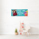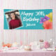 Fleurs d’aquarelle amusantes, vives et multicolores peintes par Suki’s. De grandes fleurs ornent le côté droit de la bannière, tandis qu'un cadre photo double orne le côté gauche. Personnaliser anniversaire années et nom de la fille d'anniversaire.