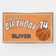 Bannière de fond de joyeux anniversaire de sports de ballon de basket-ball. Une bannière moderne de célébration d'anniversaire de sports personnalisée avec un ballon de basket-ball, un nom et un âge. Vous pouvez modifier n'importe quel texte sur la bannière.