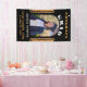 Bannière de fond de photo de remise de diplômes pailleté or noir élégant. Design moderne avec des paillettes dorées fausses sur fond noir avec le nom du diplômé et une photo dans un cadre en arc. Le texte est en caractères gras. Vous pouvez personnaliser n'importe quel texte sur le fond.