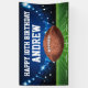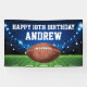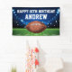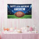 Are you ready for some football? Hang this football stadium themed birthday banner at your party! Easily edit with your child's name and birthday number. This design features an illustration of a football stadium and a football.