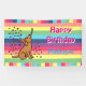 Fox Red Labrador Birthday Party Confetti Bannière horizontale pour les fans du Labrador. Un mignon Fox Red Labrador fête son anniversaire avec un casquette d'anniversaire et un sifflet! Caricature amusante. Caricature unique et drôle Labrador Retriever créée par Naomi Ochiai du Japon.