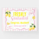 Freshly Graduated themed graduation party sign with pink stripes and watercolor lemons.