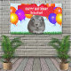 Le texte modèle sur cette photo de cobaye gris et les ballons d'art numérique avec bannières rouges peuvent être changés pour n'importe quelle occasion. Personnalisez le message dans le champ modèle.