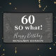 Funny Inspirational 60 Alors quelle bannière de 60e anniversaire. Citation moderne, inspirante et drôle 60 Alors ce qui est en typographie blanche tendance sur arrière - plan noir. Personnalisez avec votre nom et faites votre propre bannière de fête d'anniversaire unique. Idéal pour celui qui fête le soixantième anniversaire et qui a un sens de l'humour.