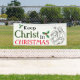 N'oubliez pas de garder le Christ à Noël avec des signes extérieurs de la cour de Noël. Les pancartes et bannières chrétiennes de Noël sont parfaites pour être accrochées à l'extérieur des édifices de l'église, des écoles paroissiales, des édifices religieux et près des crèches en direct.
