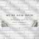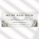 Bannière d'entreprise Géode d'agate pailletée noir et blanc Luxe Maintenant Ouverte. Parfaite pour les artistes maquilleurs, les coiffeurs, les cosmétologues, et plus encore !