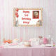 A cute girl's birthday birthday personalized photo birthday banner with a sweet mouse and cupcake theme. Pink, beige and cherry red sprinkles on a cute vanilla cupcake being held by a watercolor mouse! Add your daughter's picture in the personalize area!