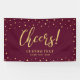 Cette bannière événementielle présente des confettis en or et une typographie "Cheers" sur un arrière - plan rouge bordeaux. Cette bannière sera une décoration parfaite pour une soirée chic et moderne. Vous pouvez customiser le texte en bas de la bannière pour vos événements. (Anniversaire, retraite, anniversaire de Mariage ou toute autre célébration)