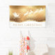Gold Joyeux Noël Père Noël Reindeer Silhouette Banner présente un Père Noël fantasque avec son renne volant à travers le ciel nocturne avec le texte "Joyeux Noël" dans l'écriture dorée moderne ci-dessous. Conçu par ©Evco Holidays www.zazzle.com/store/evcoholidays
