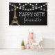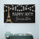 Préparez-vous à briller et à briller avec notre bannière de fête d'anniversaire chic et fillette! Ce design tendance et élégant donne le ton parfait pour une fête inoubliable. Avec une parties scintillant brillante en or imitant la tour Eiffel de Paris, ornée de lumières suspendues blanches et de confettis en parties scintillant brillante argentée, le tout face à un arrière - plan noir élégant. Retournez-le pour révéler une couleur d'or solide ceinturée qui ajoute une pop de plaisir au dos. Cette bannière n'est pas seulement jolie ; elle est glamour, moderne et totalement unique. Votre journée spéciale ne mérite rien de moins que ce chef-d'oeuvre thématique de destination. Préparez-vous à faire des souvenirs qui vont dernier une vie avec cette incroyable invitation!