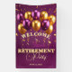 Élevez votre fête avec cette étonnante bannière du Parti de la retraite. Une cascade époustouflante d'or chatoyant et de riches ballons violets ancre le design, tandis que des confettis dorés pleuvent, capturant l'esprit joyeux d'un nouveau chapitre. Flow gold script annonce avec élégance la "Retraite Party", faisant de cette bannière l'accueil personnalisé parfait pour une journée dédiée à honorer une vie de dur travail. Customisez le nom et la date pour rendre ce magnifique design unique à vous.