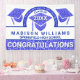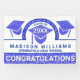 Facile à personnaliser, cette bannière personnalisée de remise de diplômes présente un casquette de parties scintillant bleu foncé et un design élégant et cinq modèles texte pour un décor de fête. Cette bannière de FÉLICITATIONS bleu et blanc de la marine a de la place pour l'année de graduation sur le plus grand mortier, le nom de votre diplômé, le lycée et des félicitations en lettres blanches audacieuses avec une ombre bleu marine foncé sur une fausse bordure de parties scintillant au fond. De la conception demi-cercle en haut flanquée de deux bouchons de graduation en faux parties scintillant assortis en bleu foncé à votre texte personnalisé, cette bannière de fête de graduation personnalisée mettra à niveau la décoration bling pour votre célébration unique.