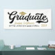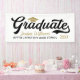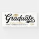 La bannière de la fête de graduation présente un design de typographie simple et élégant avec le texte de l'écriture savante "Graduate" et un casquette de grade avec un accent savoureux. Personnalisez avec le nom de votre diplômé, l'année de classe et le lycée. Notez que les couleurs or, noir et blanc peuvent être changées pour correspondre aux couleurs de l'école ou de la fête.