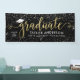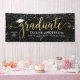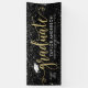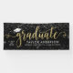 Élégante et glamour bannière de graduation personnalisée signe célèbre votre grade dans le style! Design propose un casquette de grade, un "Graduate" dans un script de fausse feuille d'or moderne, et un texte personnalisé moderne qui peut être personnalisé avec le nom du diplômé, l'année de classe et l'école. Comprend une bordure de confettis blanc et argent étincelant. La couleur noire de l'arrière - plan peut être modifiée.