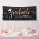 Élégante et glamour bannière de graduation personnalisée signe célèbre votre grade dans le style! Design propose un casquette de grade, un "Graduate" en faux rose d'or script, et un texte personnalisé moderne qui peut être personnalisé avec le nom du diplômé, l'année de classe et l'école. Comprend une bordure de confettis blanc et argent étincelant. La couleur noire de l'arrière - plan peut être modifiée.